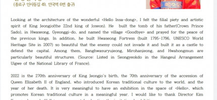 안녕, 왕의 꿈 초대개인전정조대왕 탄신 270주년 기념정조대왕은 사도세자의 원을 화성으로 옮기고 아버지가 안영하..