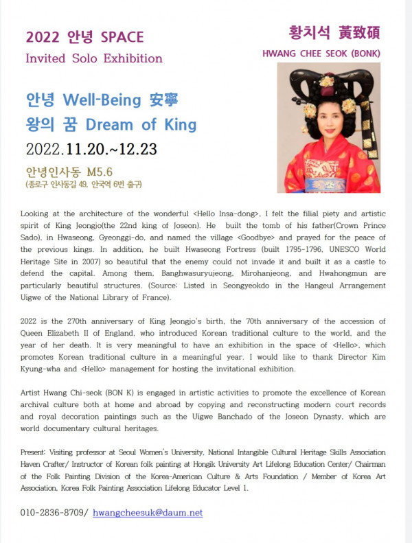 정조대왕의 아버지를 생각하는 <안녕>의 마음을 떠올리며 전시를 기획하고 1층에 조성된 갤러리에서 초대전을 갖게 되었다.