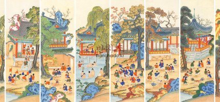 백동자도 8폭 병풍 황치석 105X35cmX8ea (2013) 석채, 봉채,