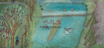 양평의 봄 황치석 BON K 23x41cm-2021 한지에 채색