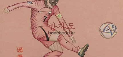 황치석 손흥민 2022 한지 석채 52x41cm