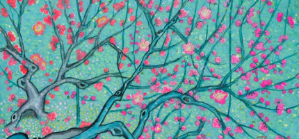 재료: 한지에 채색일지매: 봄의 환희 / 광양 홍쌍리 매화매을에 2025년 이른 봄에 방문하여 대나무 숲을 거닐면 갖 봉우..