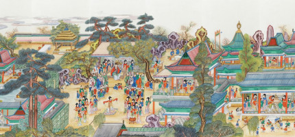 -제목: 곽분양행락도-크기: 120x400cm-재료: 한지에 석채-제작기간: 2018-2024