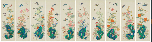 제목: 괴석화접도 10폭 (궁중화 모사)
